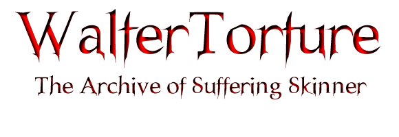Does the thought of Skinner weeping touch your heart? Do you yearn to offer comfort to a vulnerable AD? Does it bring a lump to your throat when the big guy is brought to his knees? If so, this is the place for you. This site is home to X Files fanfiction stories where our favourite sable-eyed, steely-jawed, lion-hearted Assistant Director undergoes anguish, angst, pain and general agony. From psychological abuse to emotional torment, from physical suffering to mental torture - it's all here. So if you like your AD noble and suffering, grab a box of tissues, start sniffling and take a look through the archive. To enter, click |
